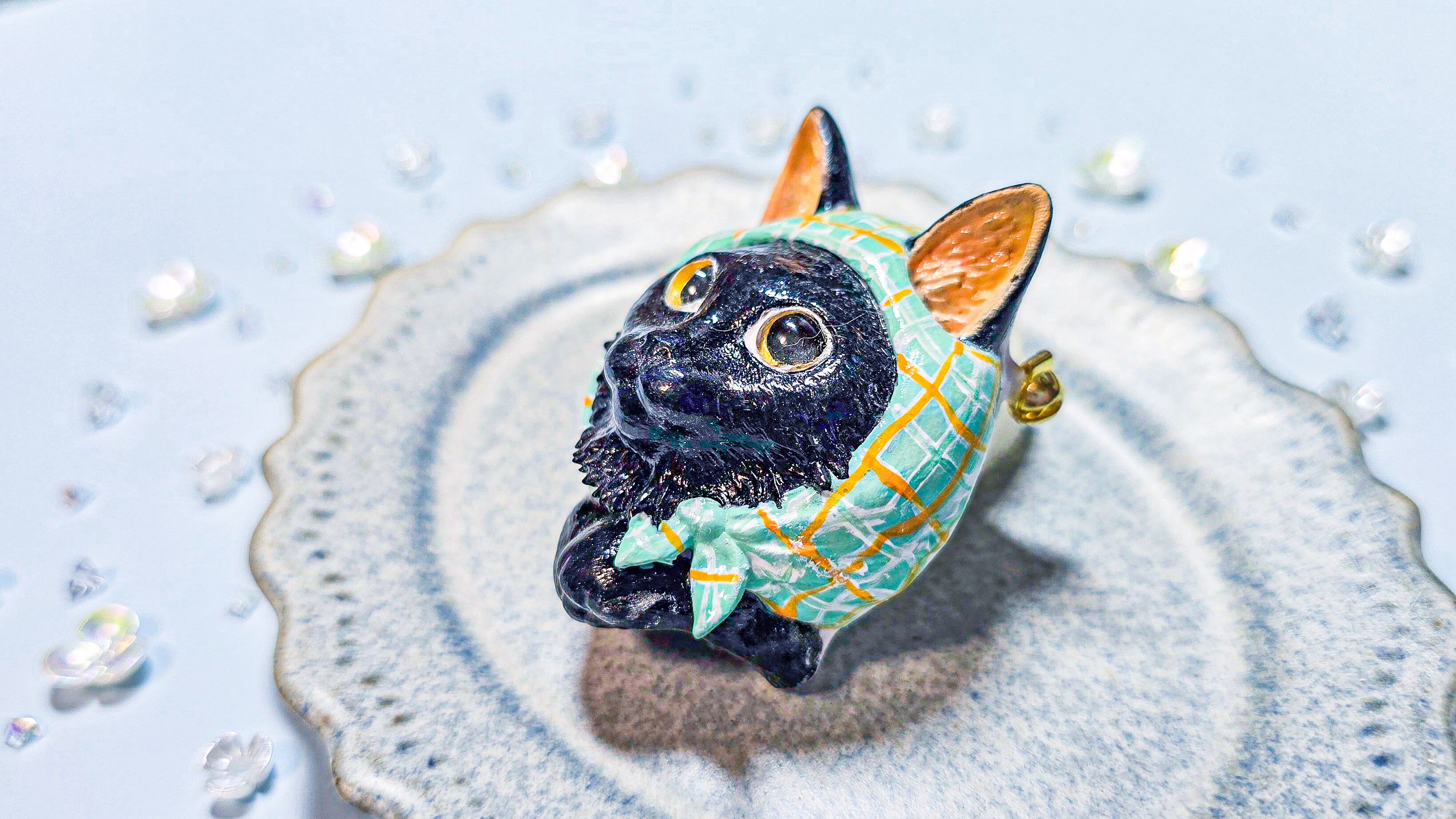 細かな毛並みや光沢感、スカーフの模様までこだわって仕上げました。