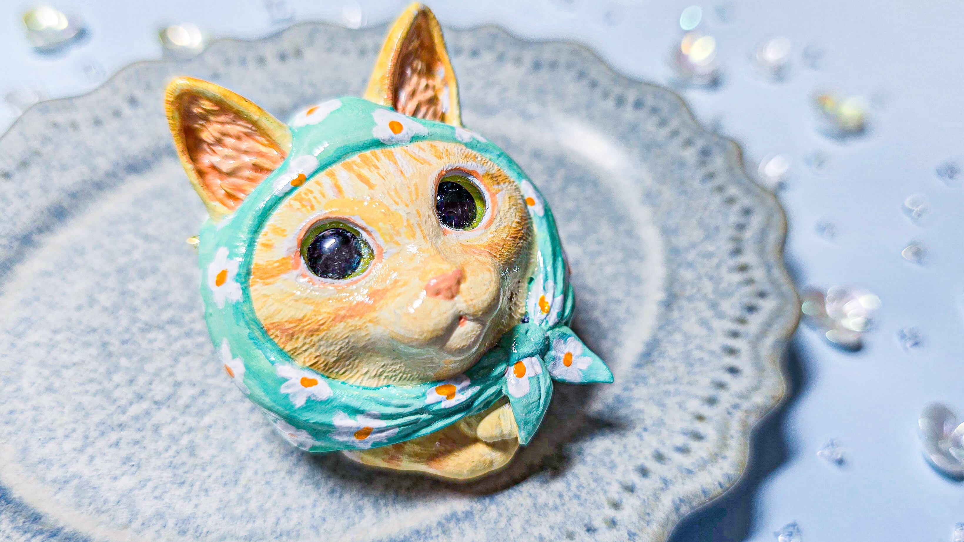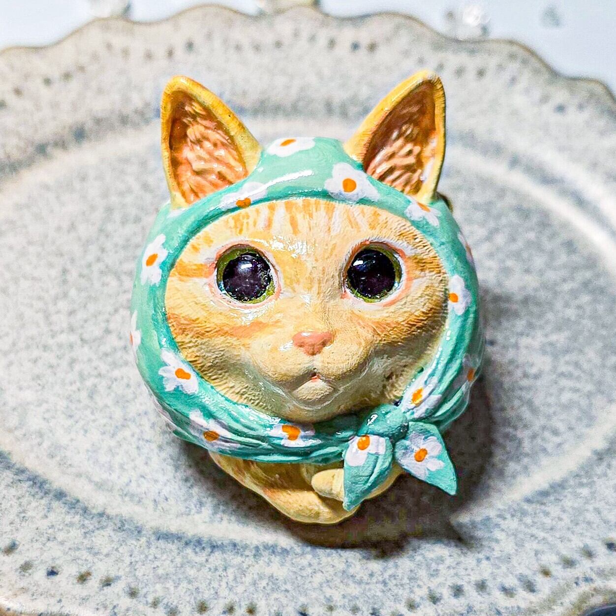 つぶらな瞳に、きゅっと結んだ花柄スカーフ。