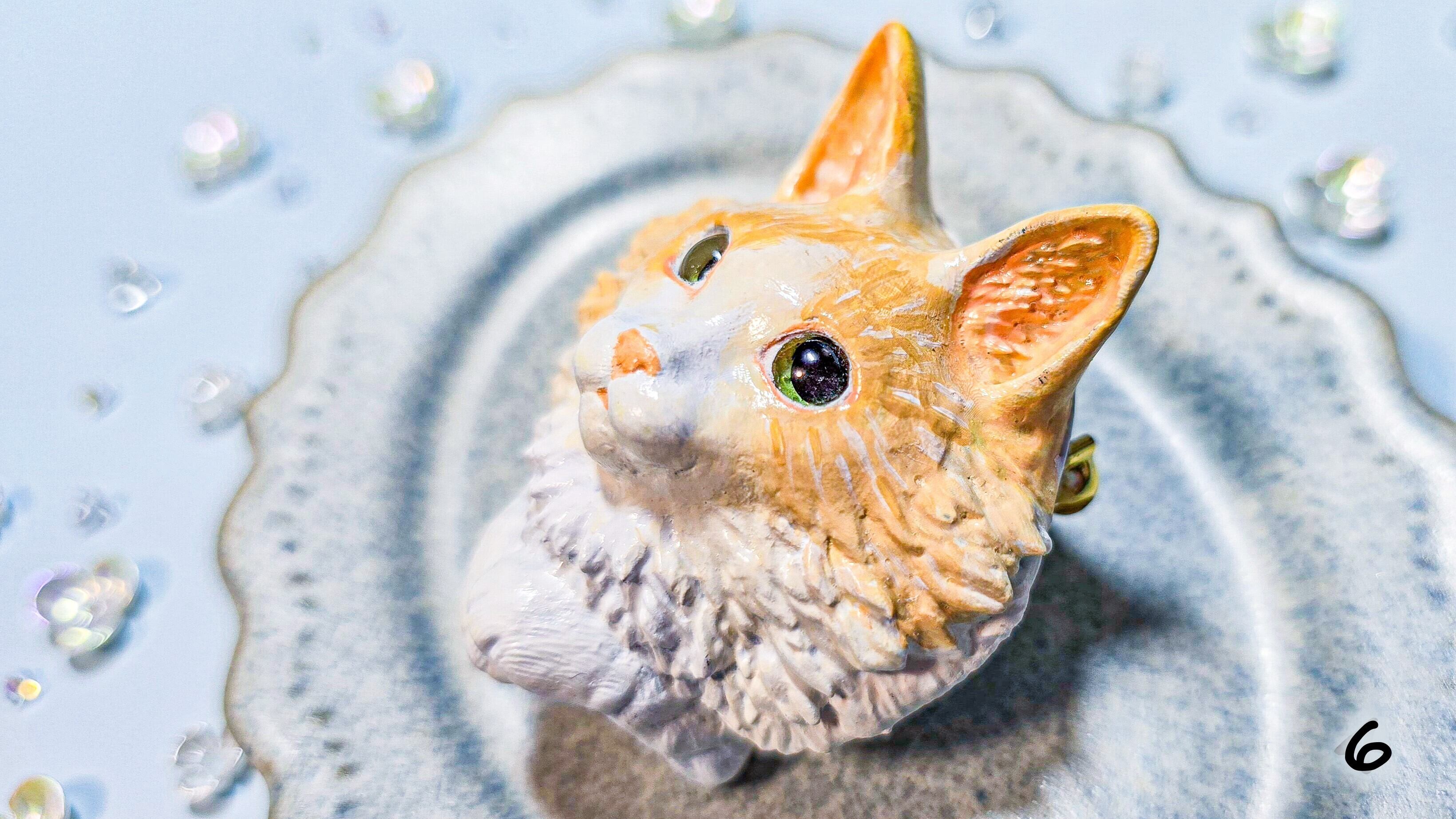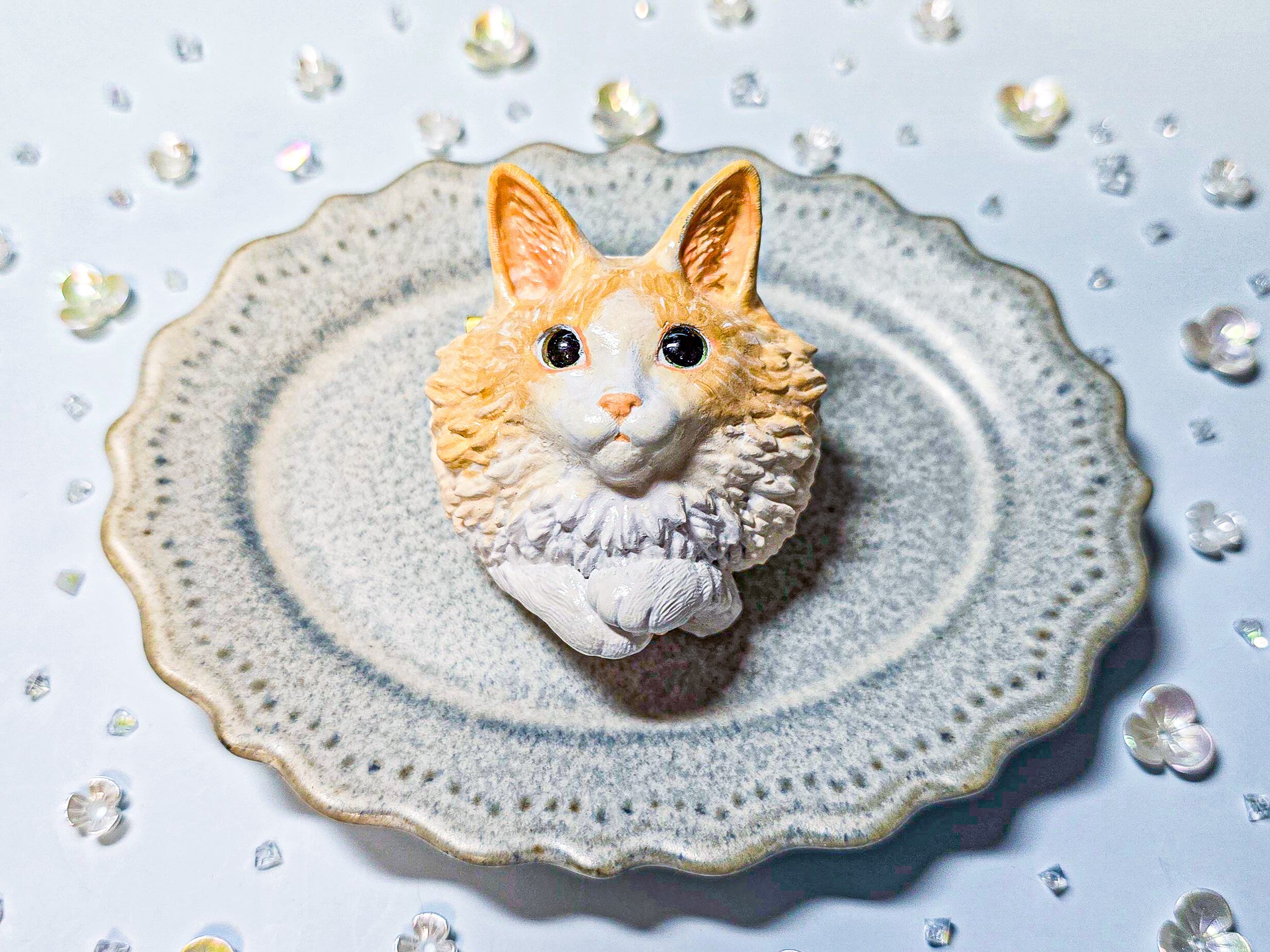 茶白の長毛さんたちをモチーフにした、もふもふ感たっぷりの立体ブローチです。