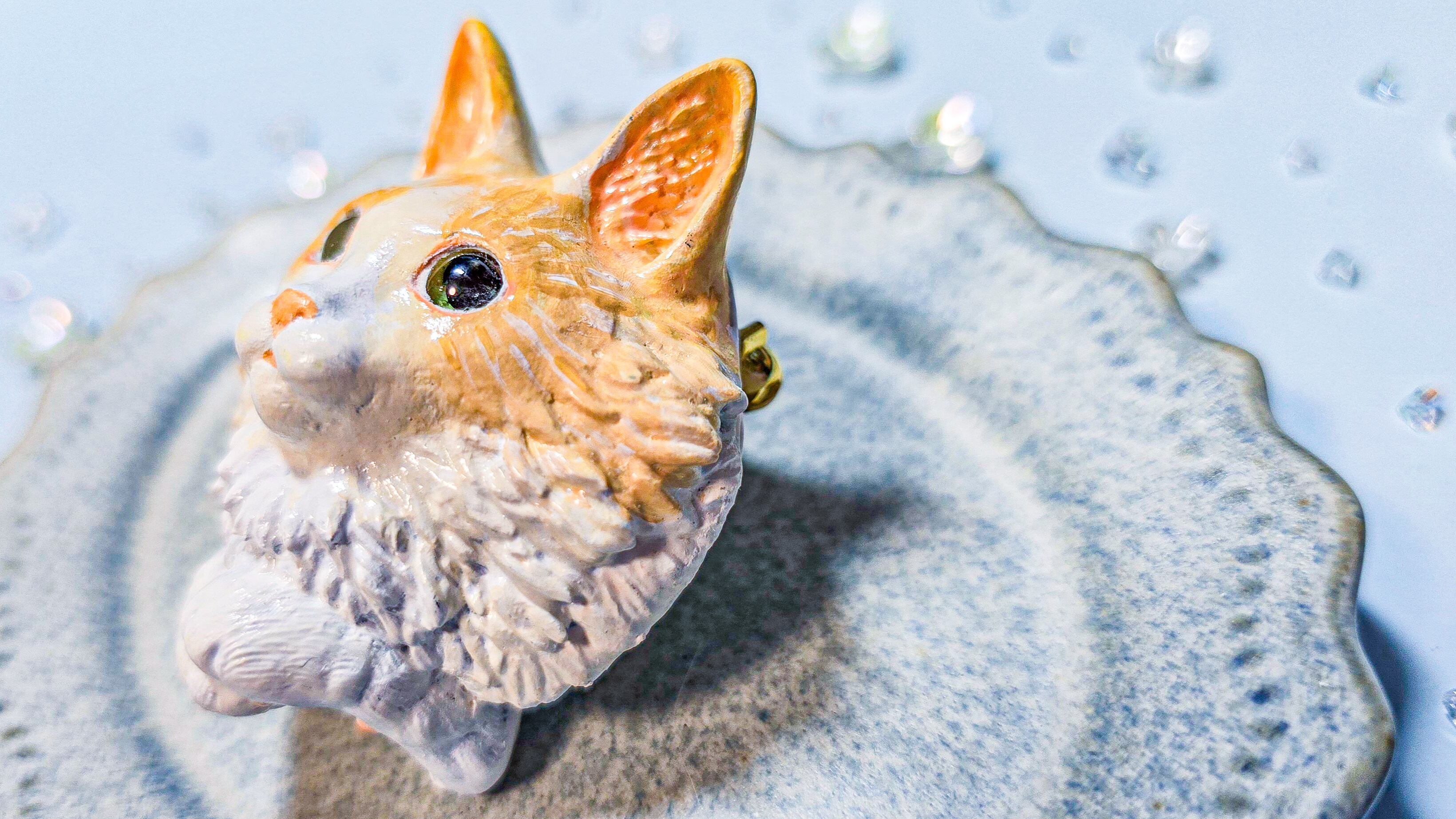 お洋服やバッグにつけると、まるで小さな猫がちょこんと寄り添っているみたい。
