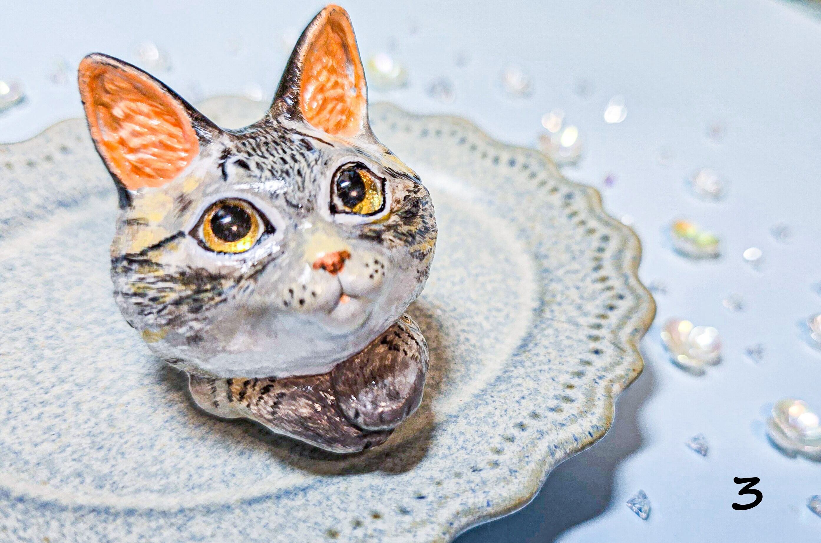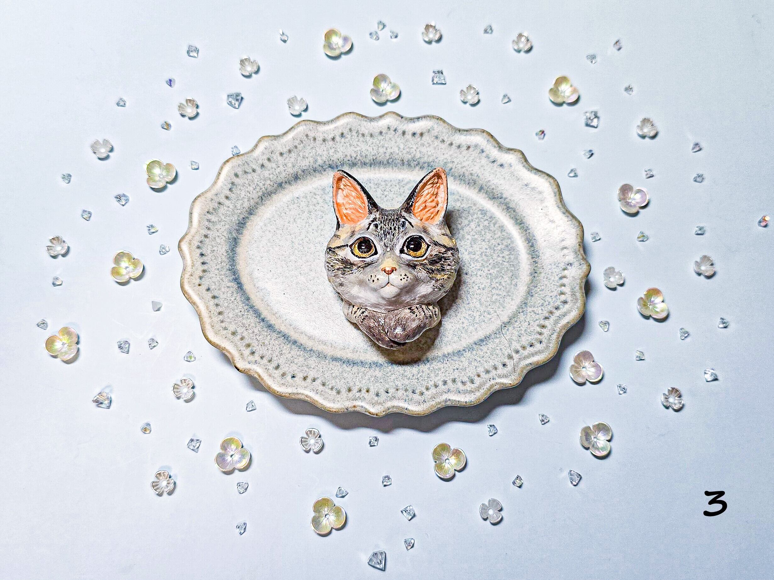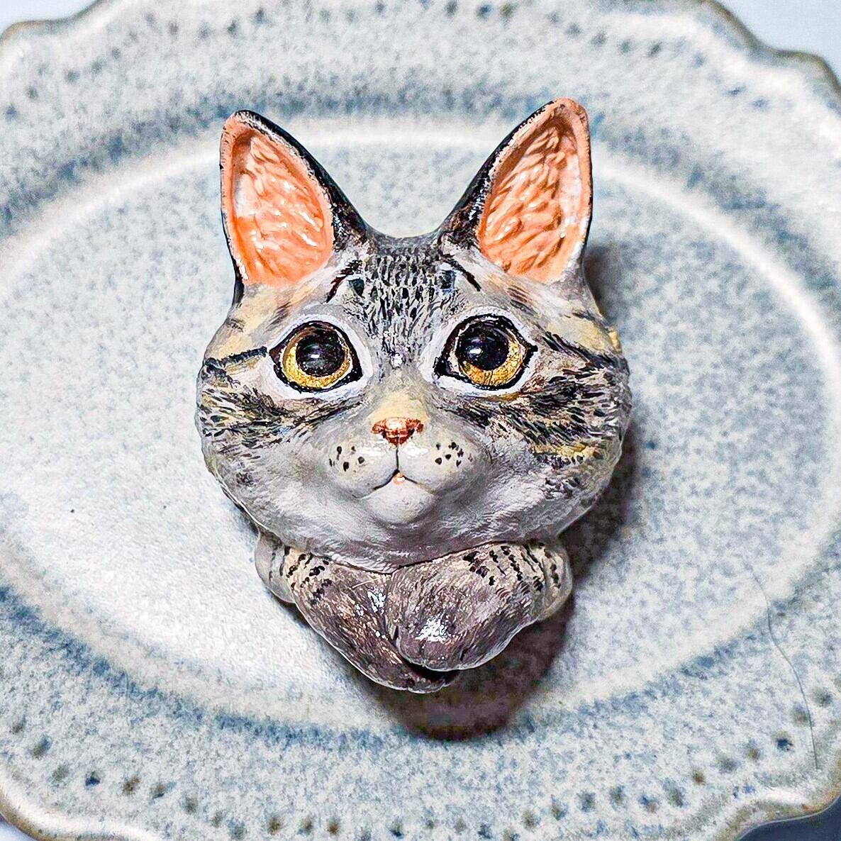 猫らしさ全開の「キジトラ」さんたちが、ふっくらと立体ブローチになりました。